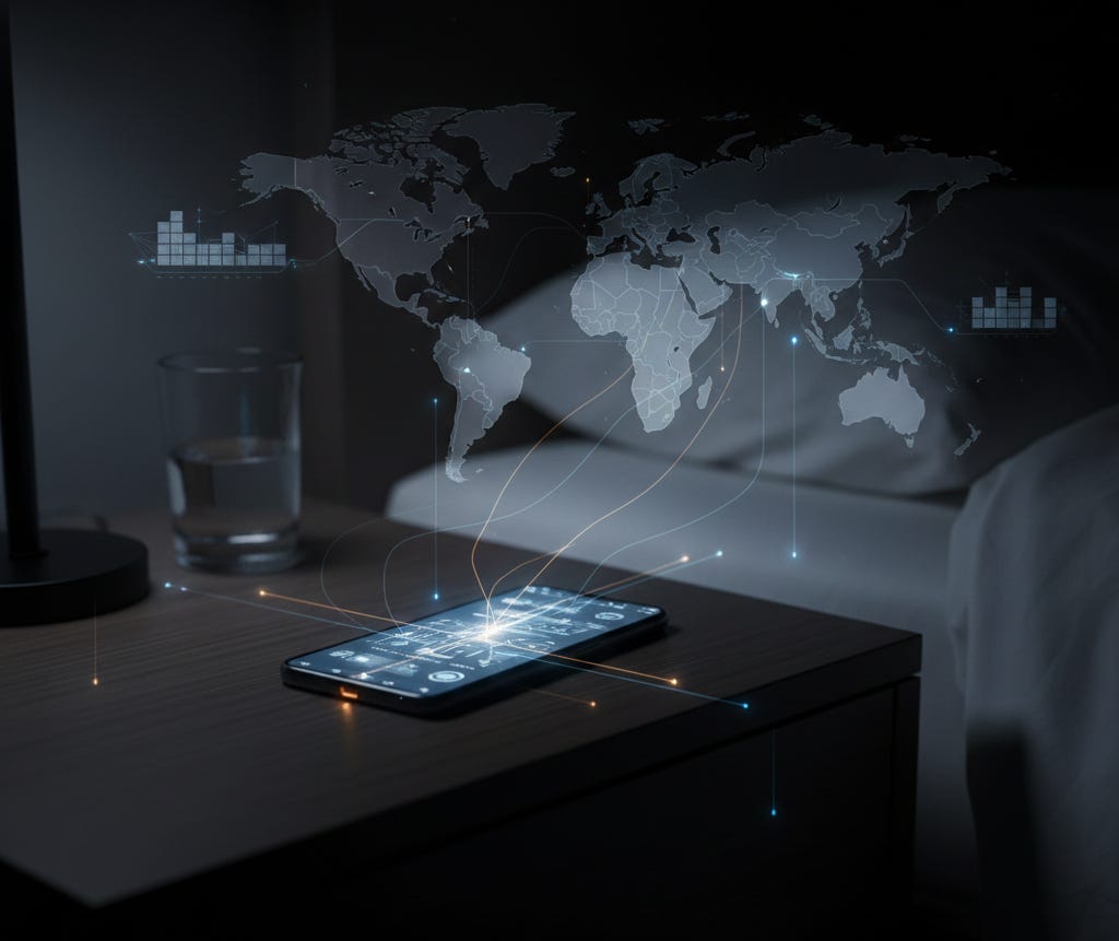 Outside the window, far below street level, a container door sighs shut. The sound reaches no one. But the 3rd Hand has already filed it.